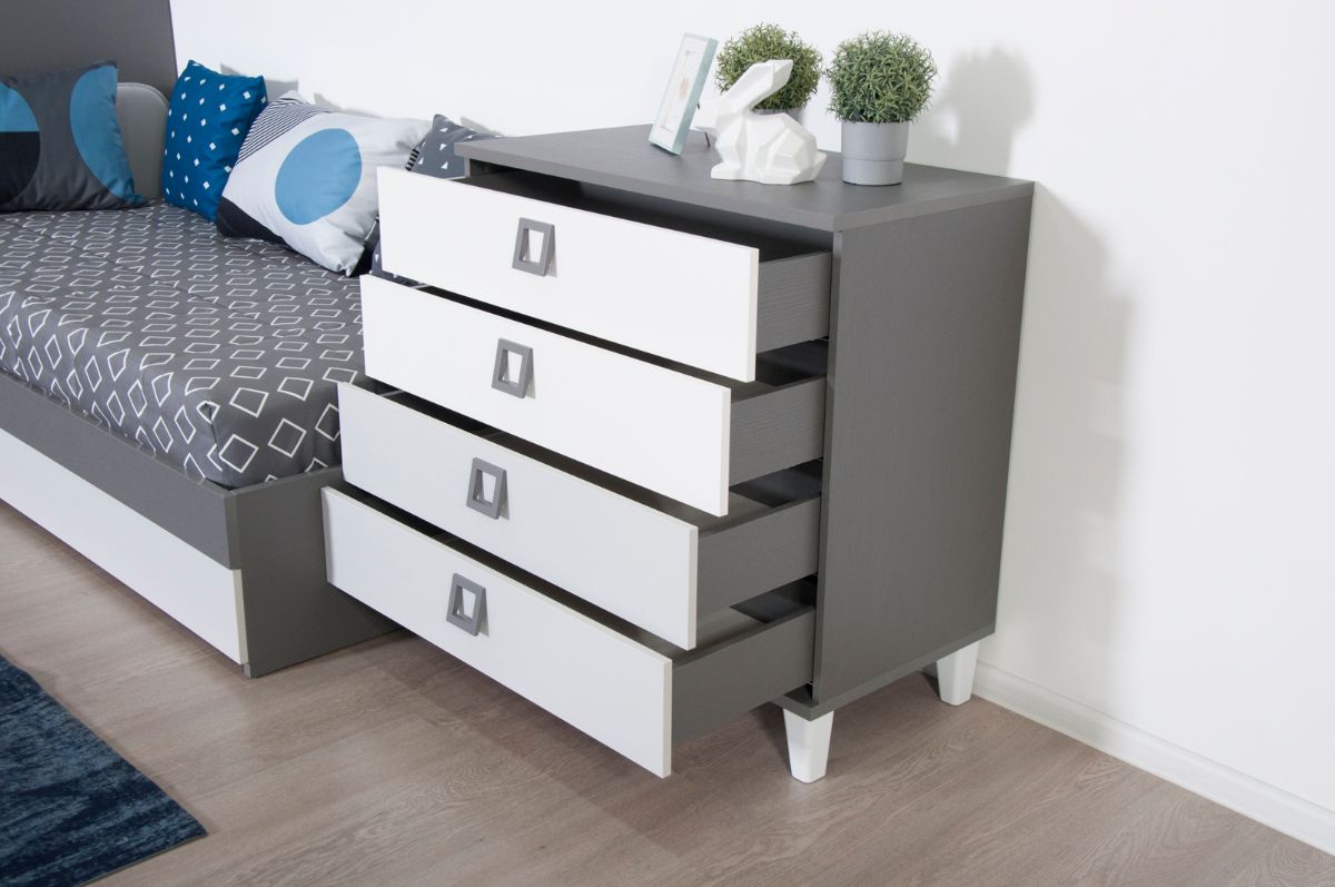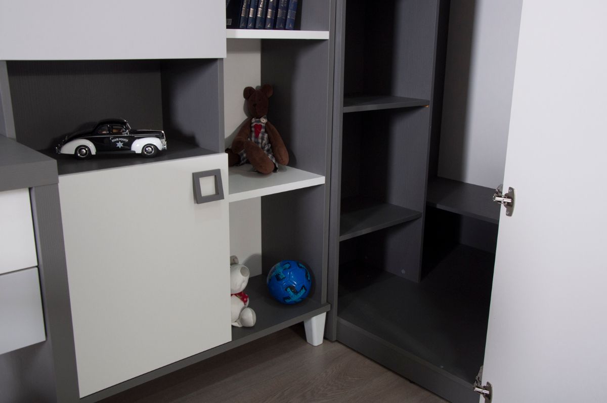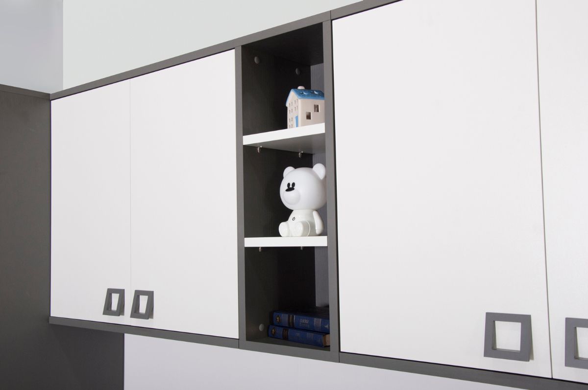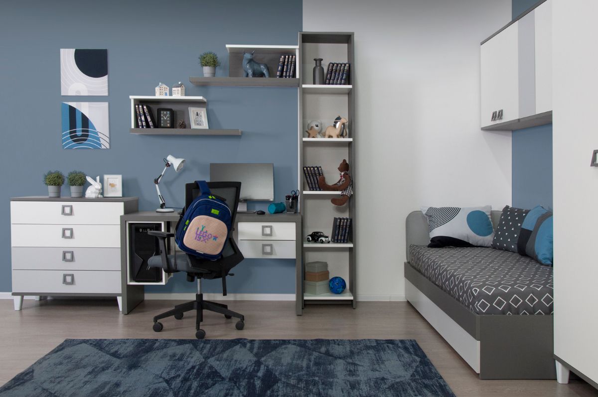 Коллекция мебели "ВЕКТРА" - минималистичная мебель в детскую с рабочим уголком, спальным местом, пространствами для отдыха. Темно-серые корпуса модулей на высоких белых ножках в сочетании с белыми и светло-серыми фасадами придают интерьеру графичность и легкость. Большой выбор модулей различного назначения позволит создать стильную комнату любых габаритов.