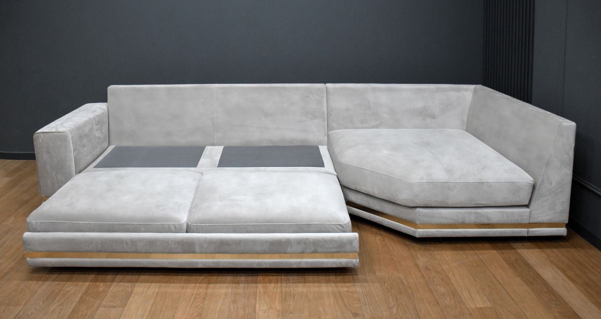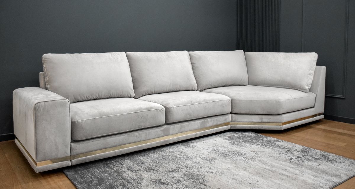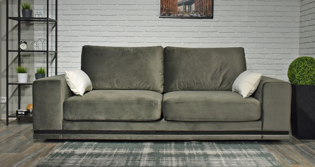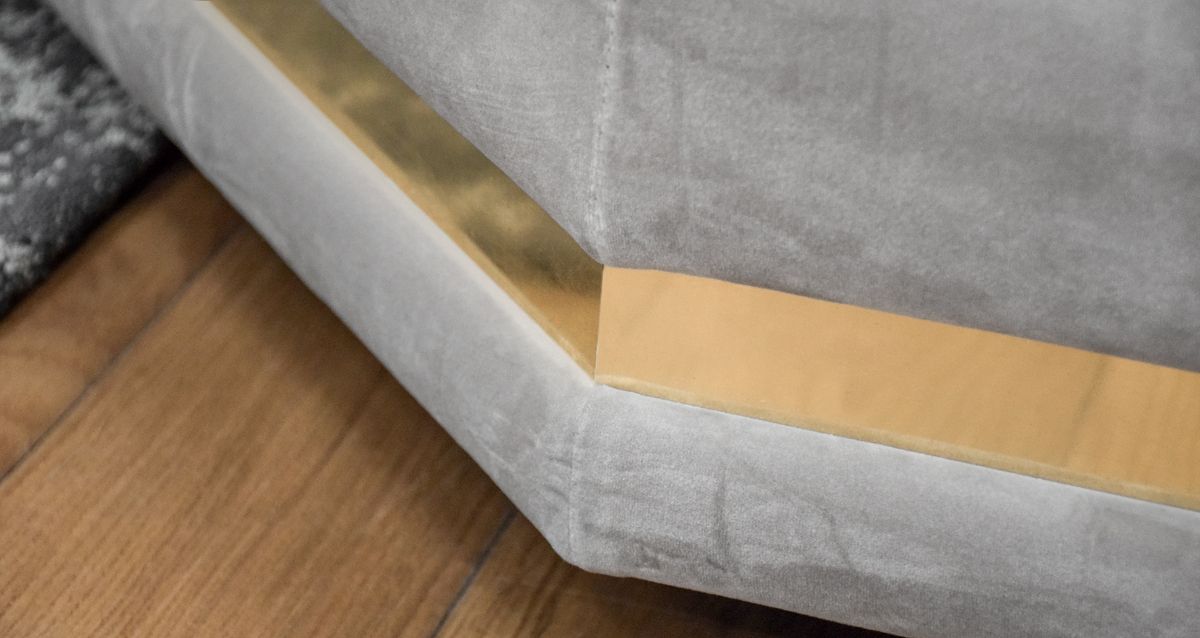 Нижняя часть дивана по периметру украшена декоративным молдингом, который придает модели элегантную строгость. Молдинг может быть выполнен как из натурального дерева, так и из металла.