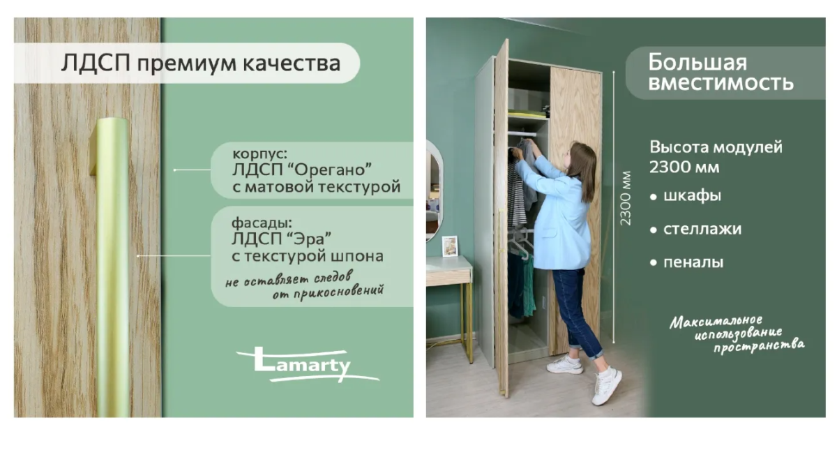 • Модули высотой 2300 мм позволяют максимально использовать пространство, дают возможность оформить комнату «на вырост».
