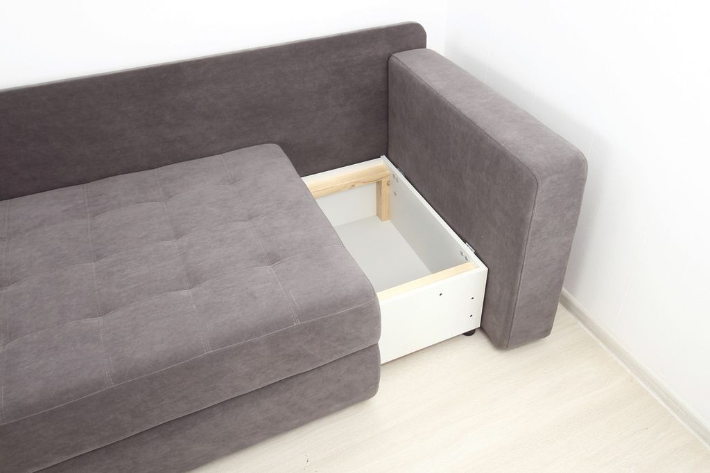 Короб для постельных принадлежностей находится под сиденьем. Изготовлен из ЛДСП.