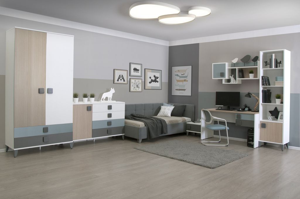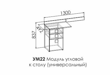 Угловой универсальный модуль с тумбой к письменному столу образует угловой стол - элемент модульной системы для детской/подростковой комнаты от фабрики Мирлачева.