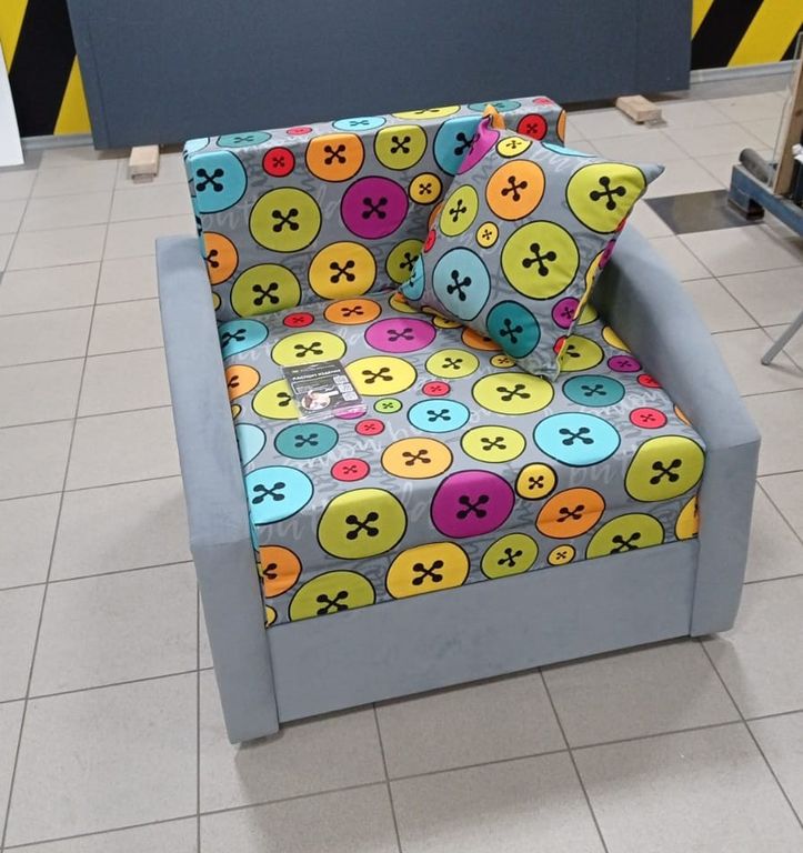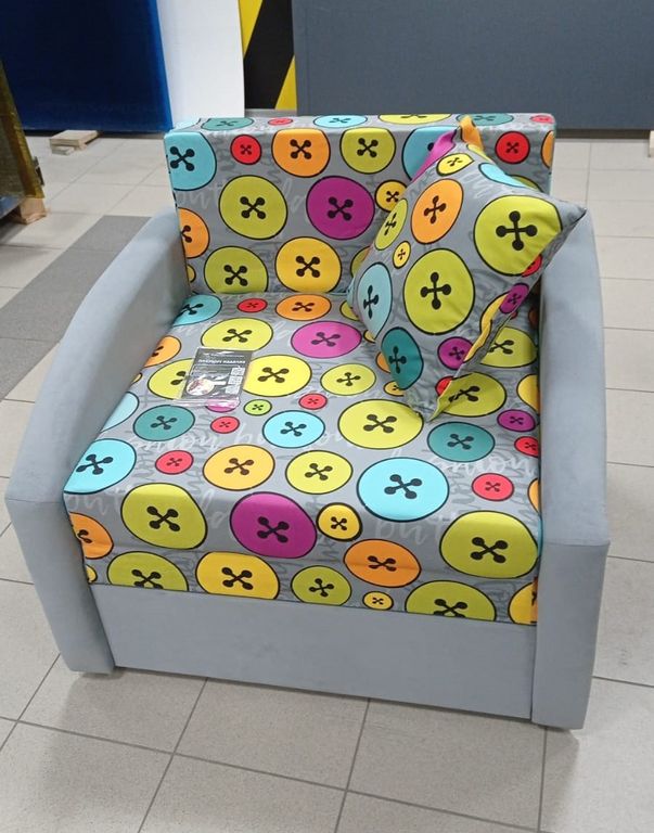 - Принт Пуговки, подлокотники велюр Грей (серый)