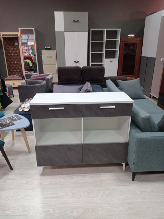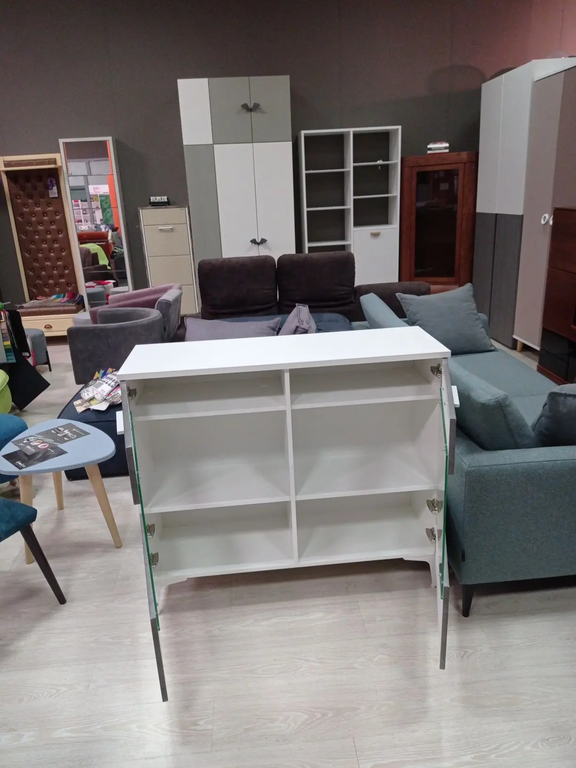 Тумба со стеклянными дверцами - элемент модульной системы для гостиной в стиле минимализм.