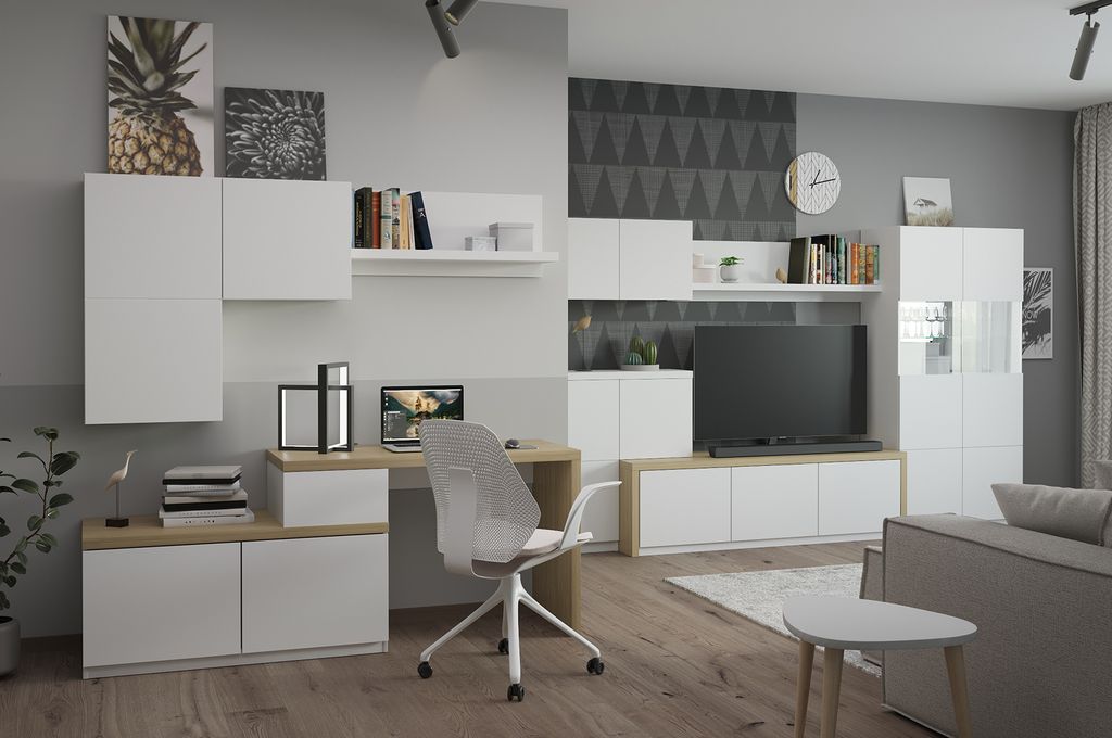 Тумба к приставному столу - элемент модульной системы для гостиной в стиле минимализм.