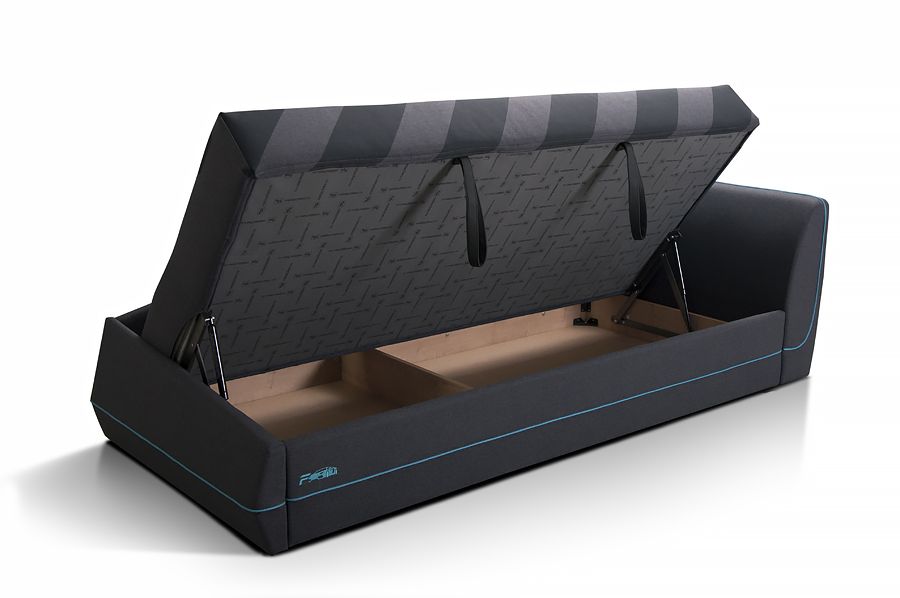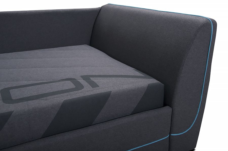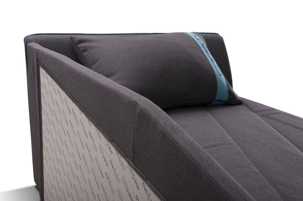 Мягкие изголовье и спинка позволяют ей в дневное время служить уютным диваном.