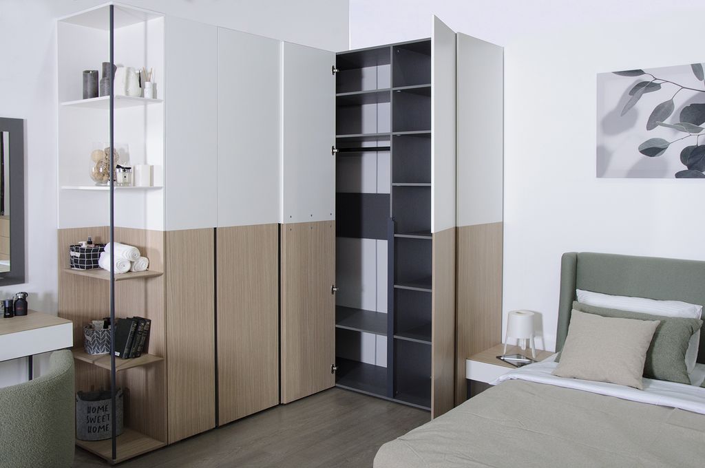 Угловой шкаф для одежды - элемент модульной системы для спальни от фабрики Мирлачева.