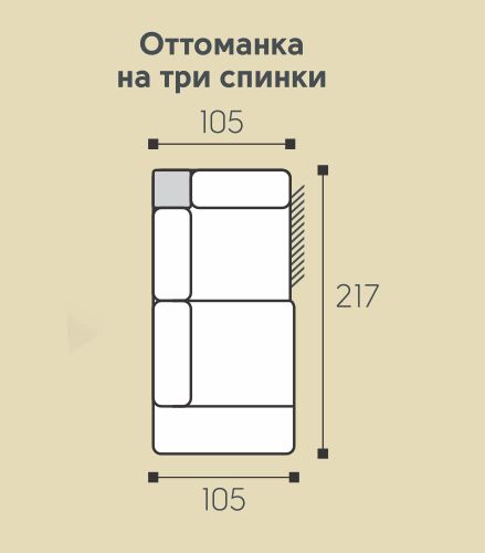 Модуль-оттоманка с тремя спинками с коробом для белья.