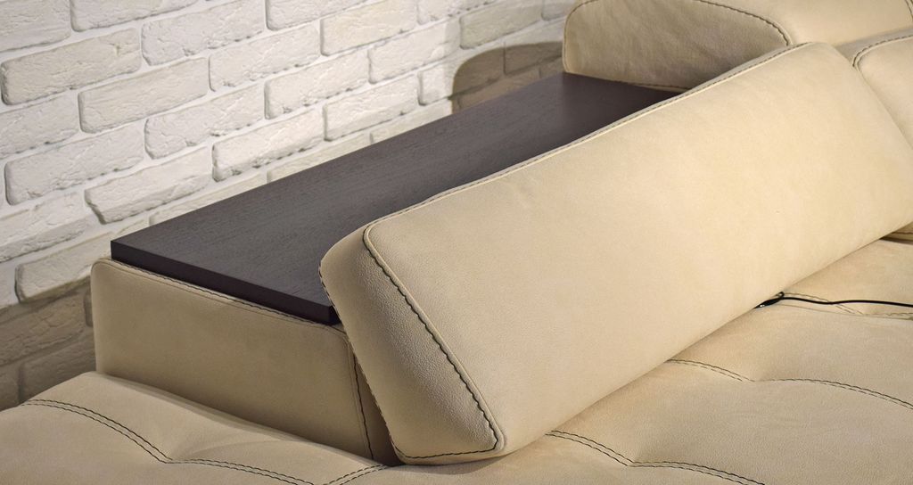 Боковой приставной модуль с выдвижным электрическим баром для создания края дивана без подлокотника.