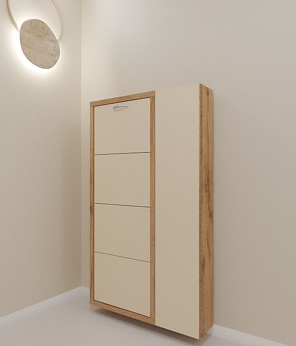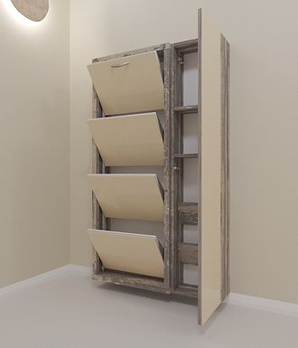 Навесной обувной шкаф Айрон-4 Дуэт на 4 секции с дополнительным модулем-пеналом с полками.