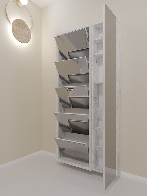 Навесной обувной шкаф Айрон-5 Дуэт на пять секций с дополнительным отделением с полками