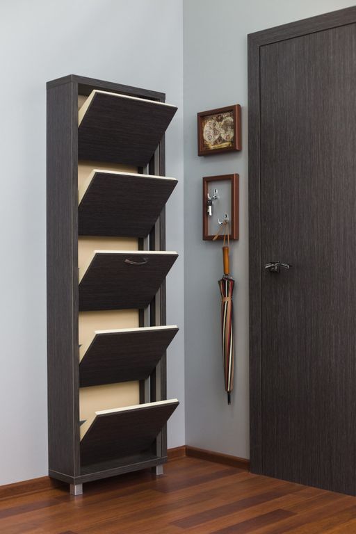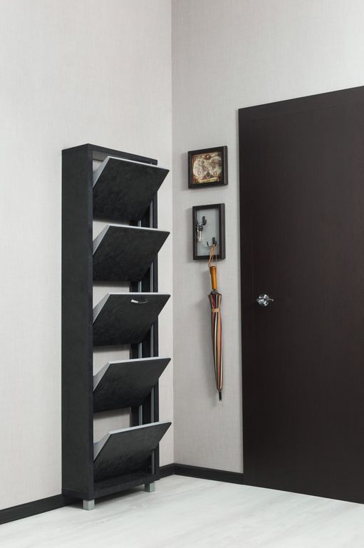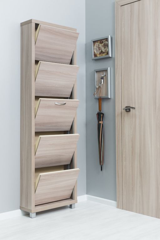 Обувной шкаф Айрон-5 с пятью синхронно открывающимися секциями.