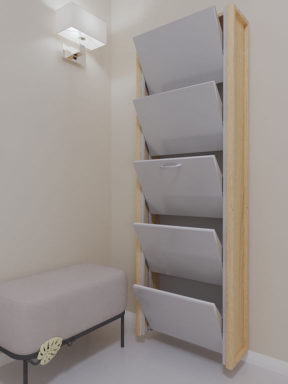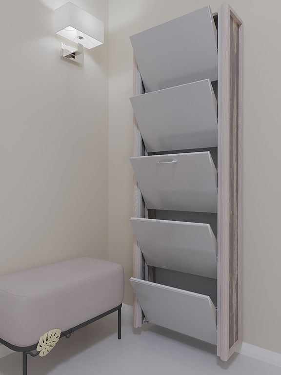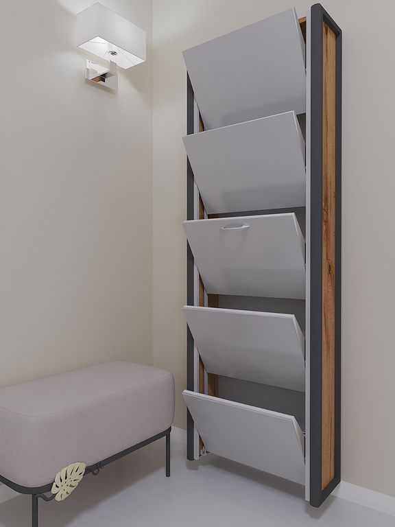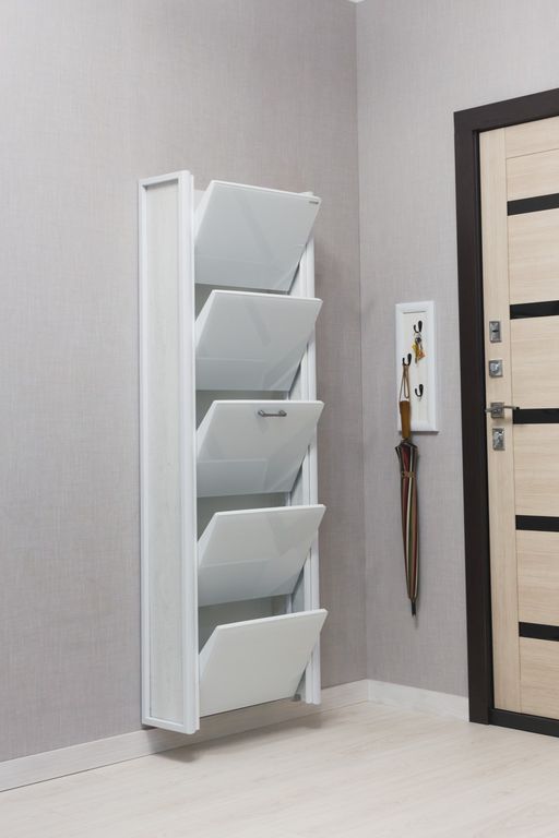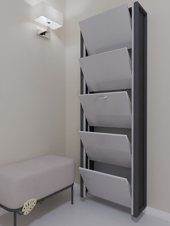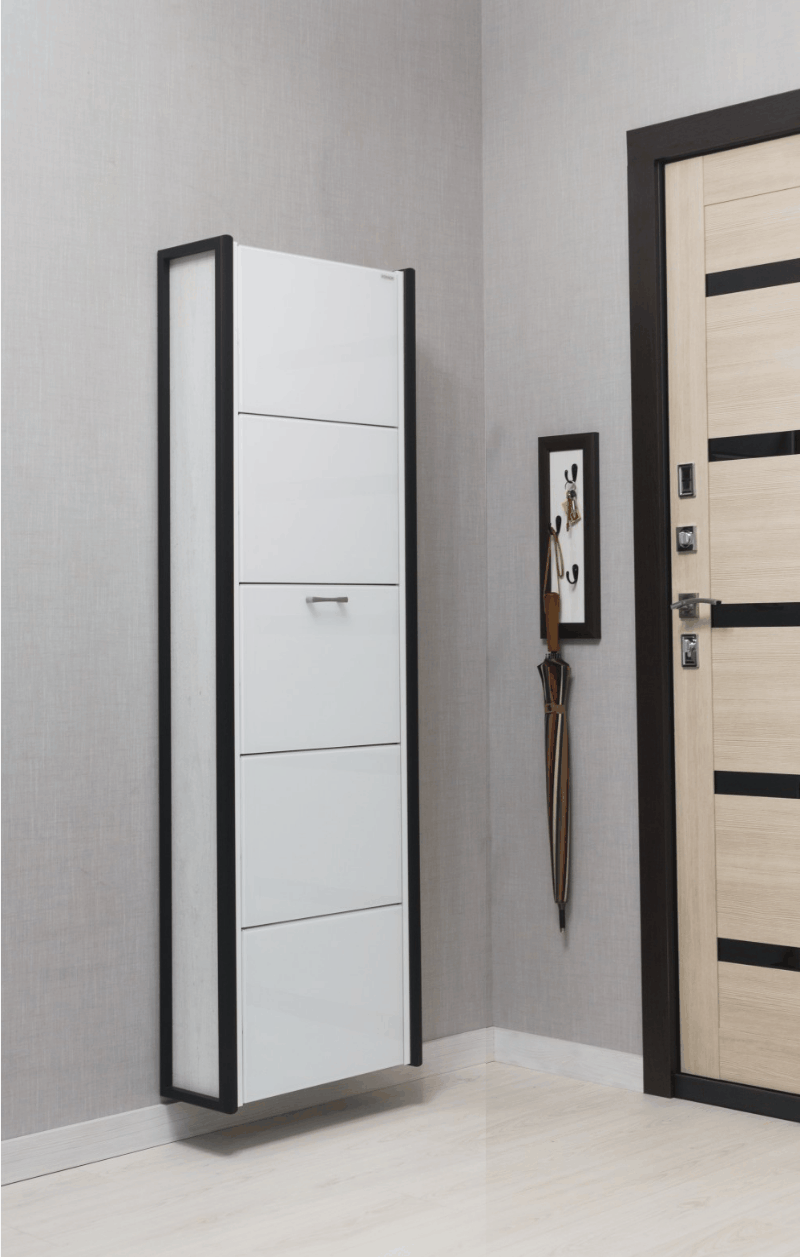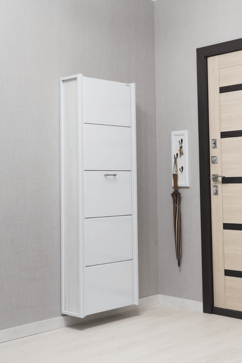 Навесной обувной шкаф Айрон-5 Комфорт с пятью секциями одновременного открывания.