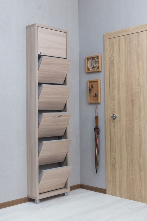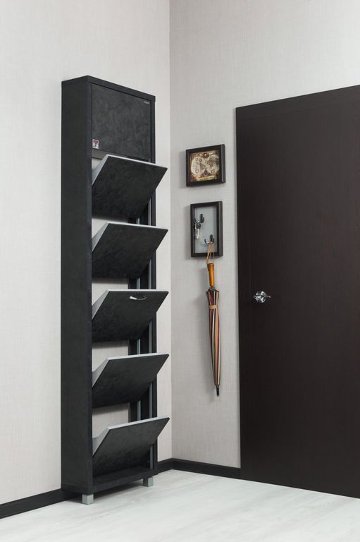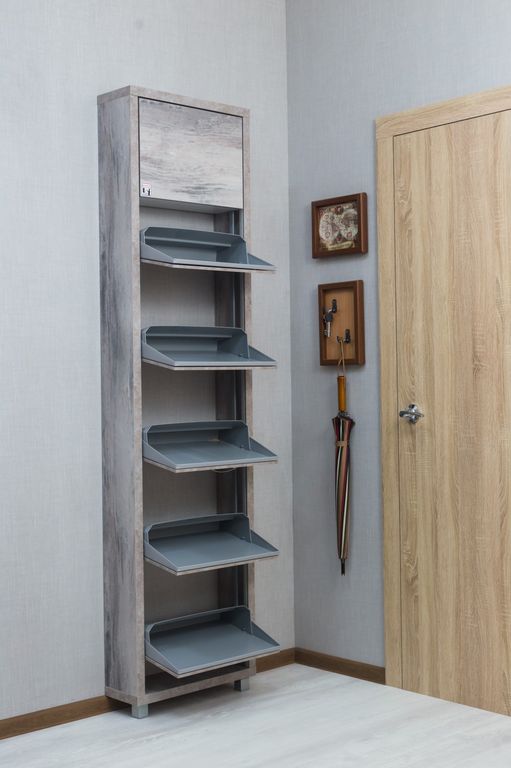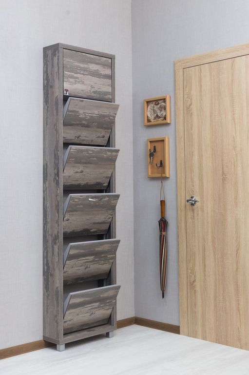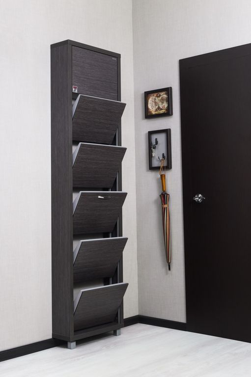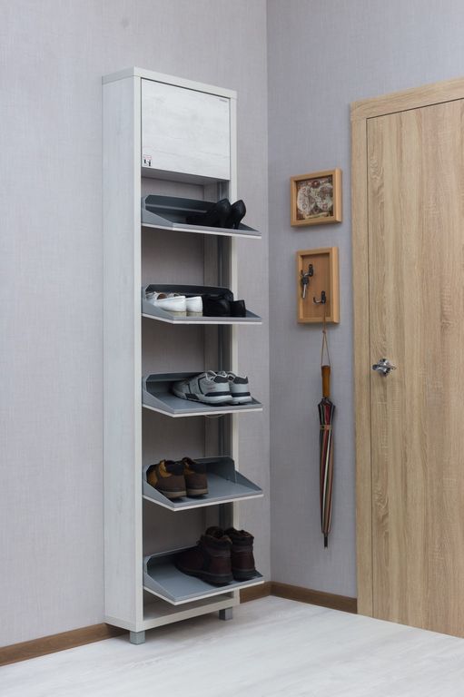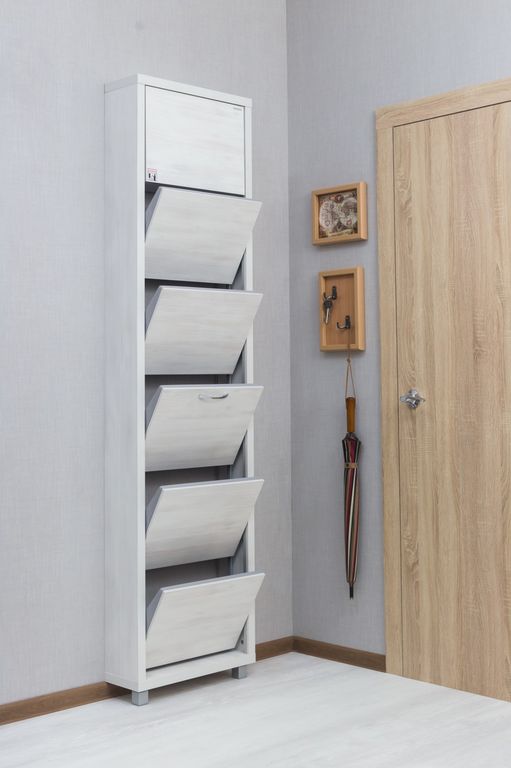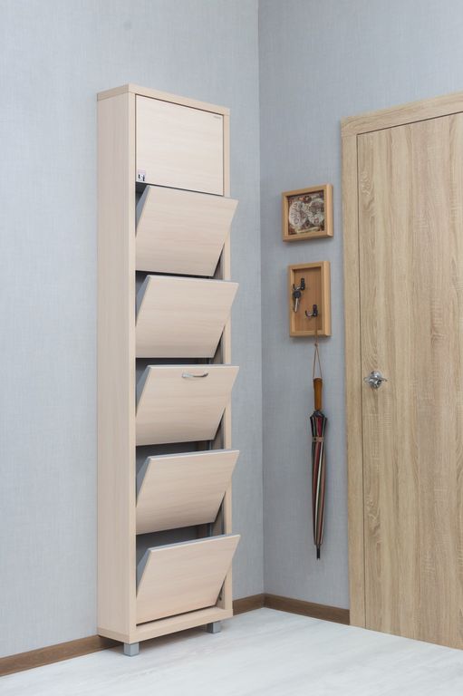 Обувной шкаф Айрон-5 Твикс с пятью синхронно открывающимися секциями и полкой.
