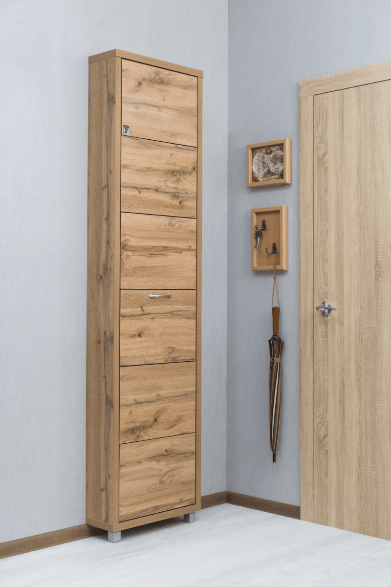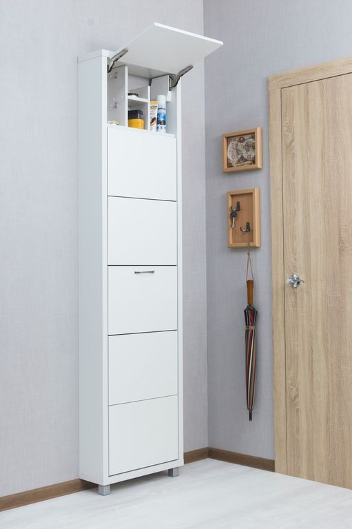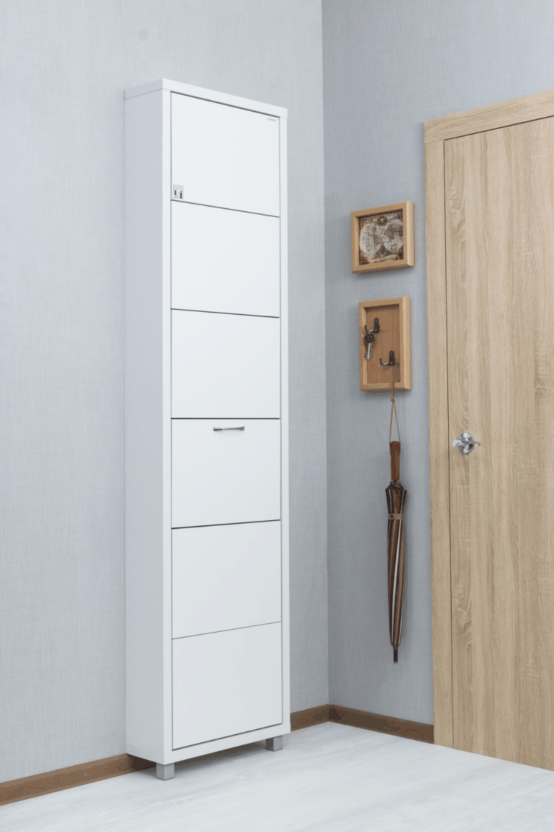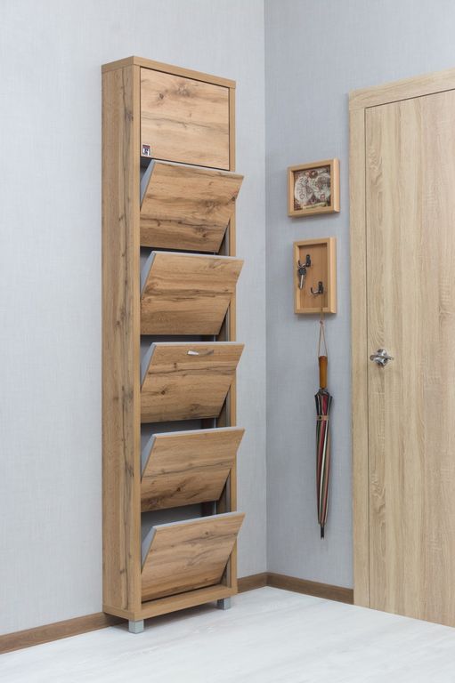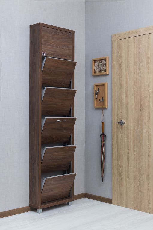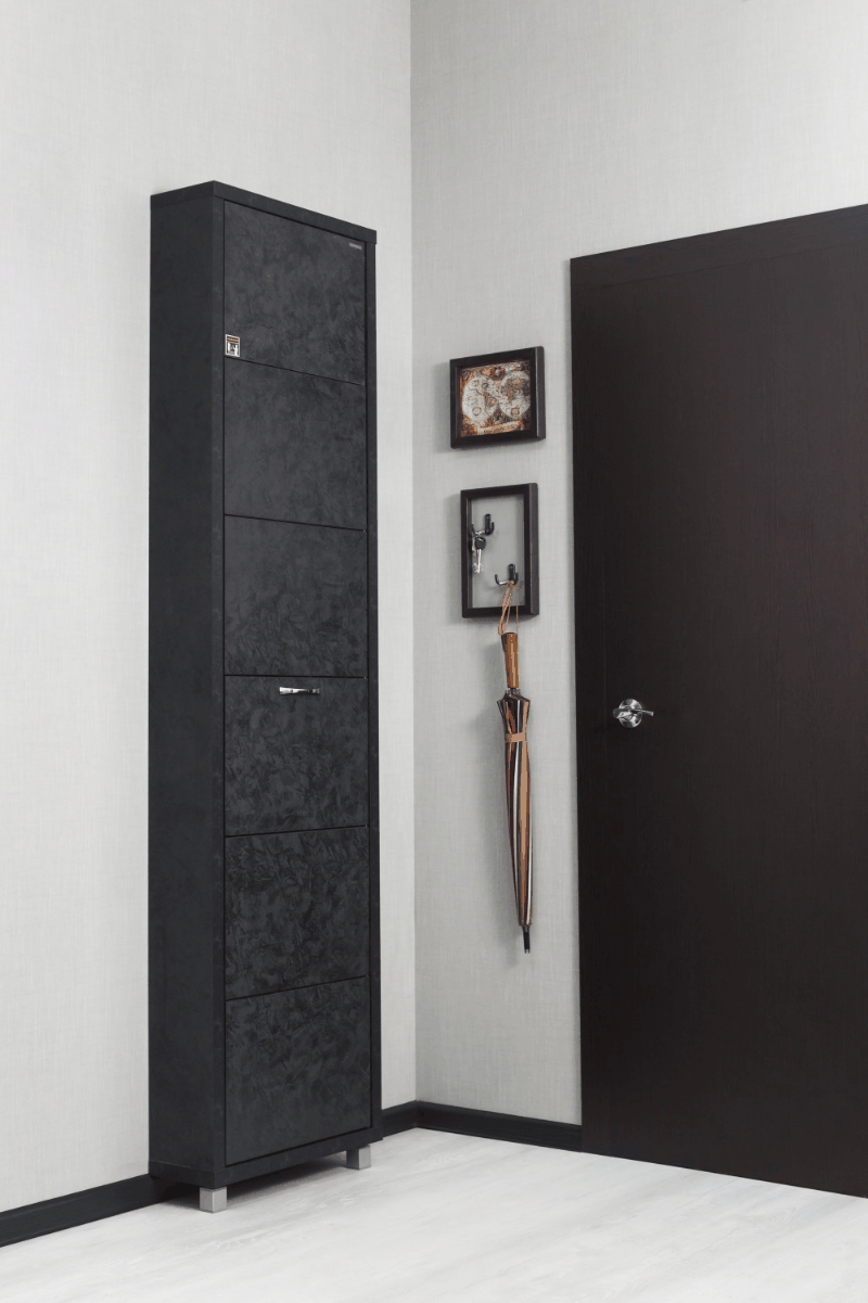 Обувной шкаф Айрон-5 Твикс с пятью синхронно открывающимися секциями и полкой.