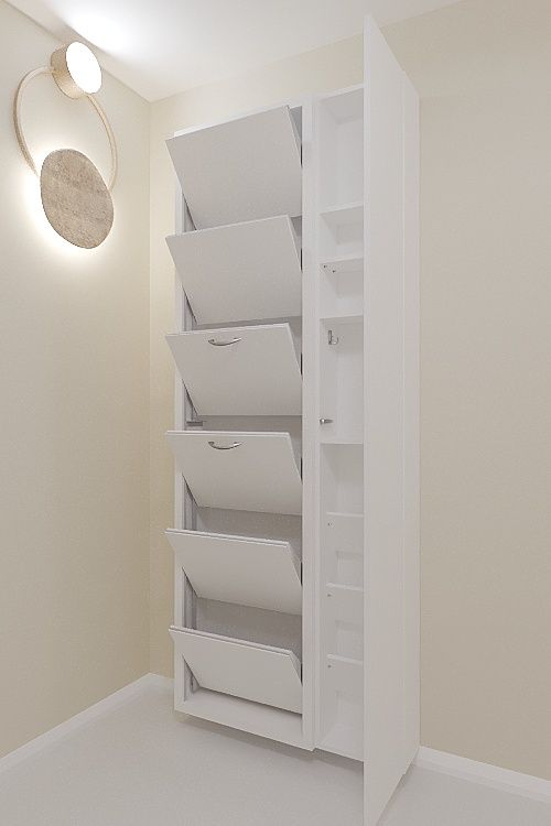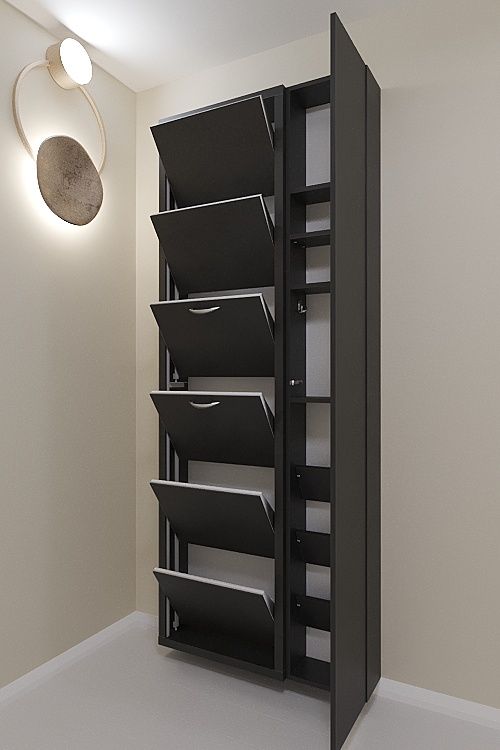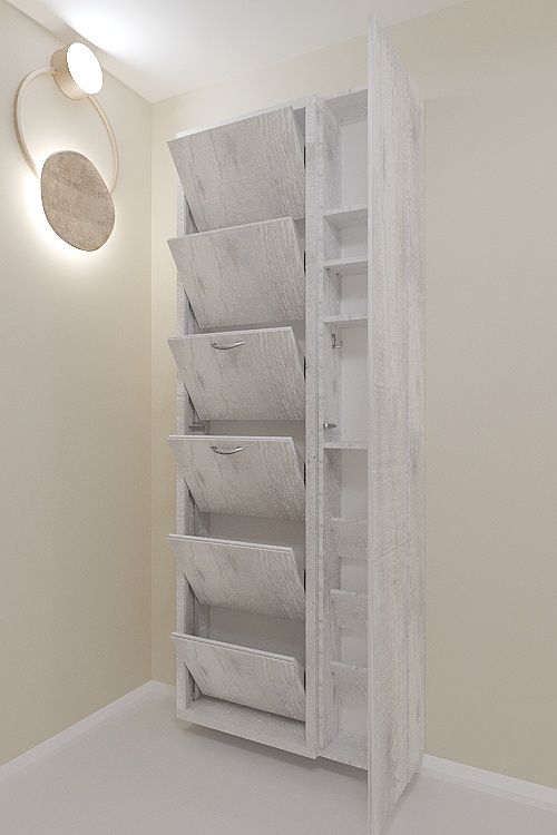 Навесной обувной шкаф Айрон-6 Дуэт на шесть секций с дополнительным модулем-пеналом с полками