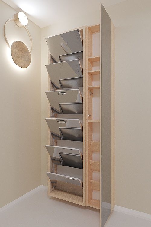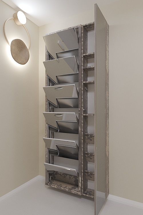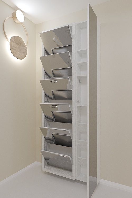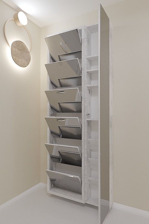 Навесной обувной шкаф Айрон-6 Дуэт на шесть секций с дополнительным модулем-пеналом с полками