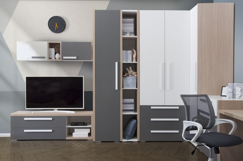 Стеллаж узкий открытый с полками - элемент модульной системы для детской/подростковой комнаты от фабрики Мирлачева.