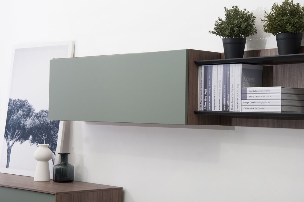 Навесной шкафчик горизонтальный с фасадом - элемент модульной системы для гостиной в стиле минимализм.