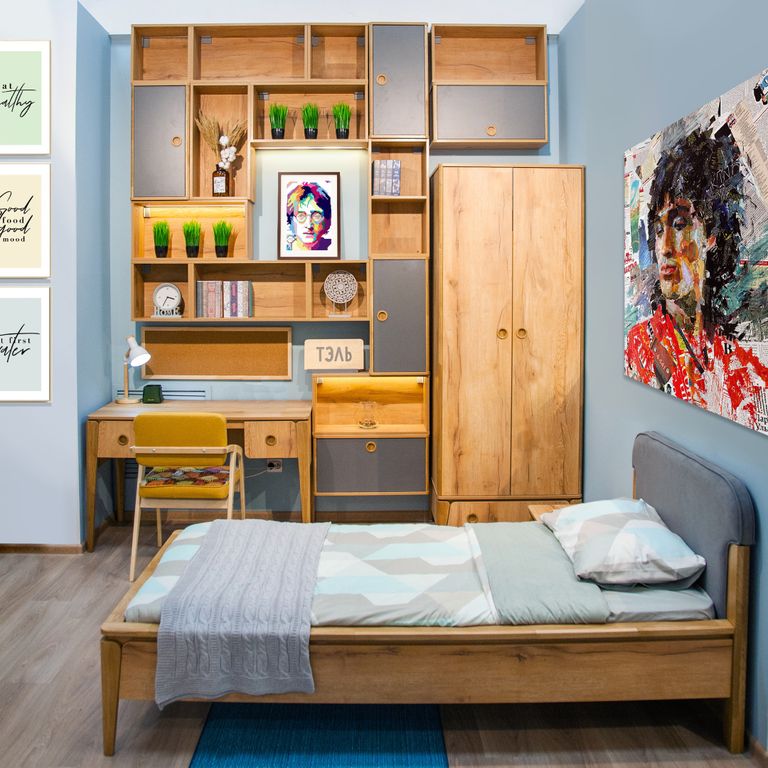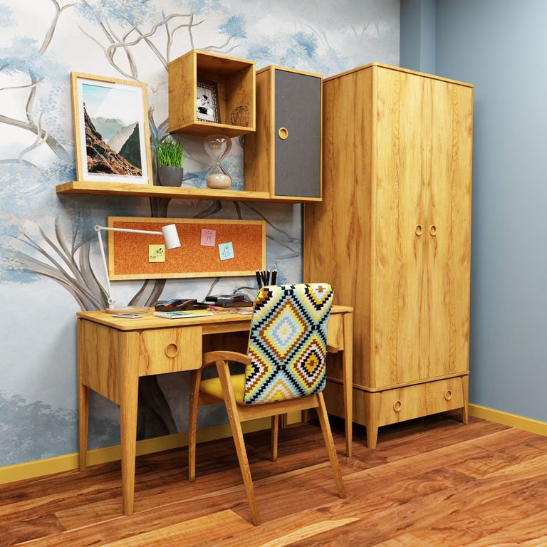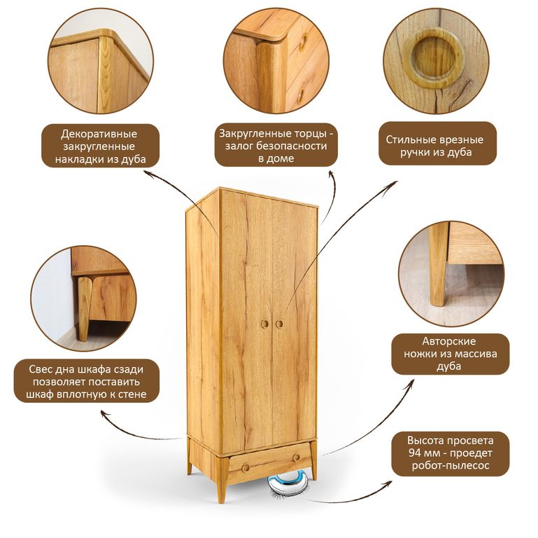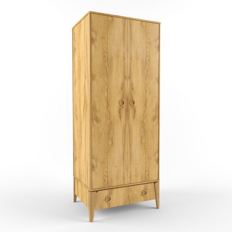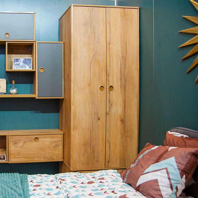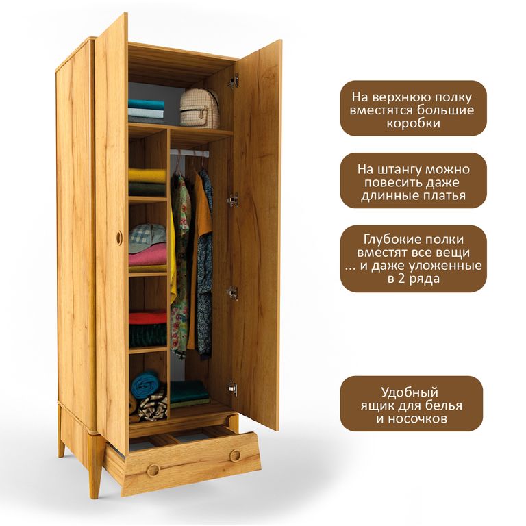 Шкаф двухстворчатый с выкатным ящиком. Этот шкаф- само воплощение домашнего и родного, с натуральным фасадом и лесными загородными мотивами. Отлично дополнит интерьер детской комнаты, став частью семьи на долгие годы.