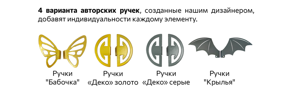 - Ручка металлическая: Бабочка золото/Летучая мышь серый/Деко золото/Деко серый