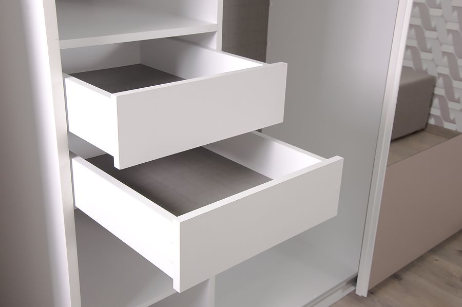 Внутреннее наполнение шкафа выполнено из ЛДСП белого цвета.