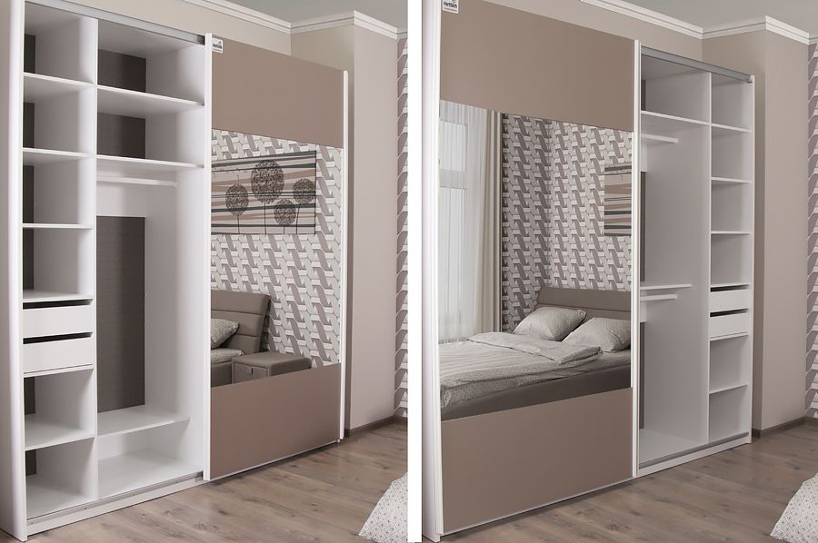 Шкаф-гардероб с фасадами купе с зеркалом для спальни. Продуманное наполнение шкафа позволит рационально использовать полезное пространство.
