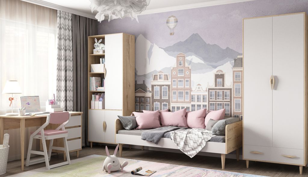 Шкаф-пенал с полками - элемент модульной системы для детской-подростковой комнаты от фабрики "38 Попугаев".