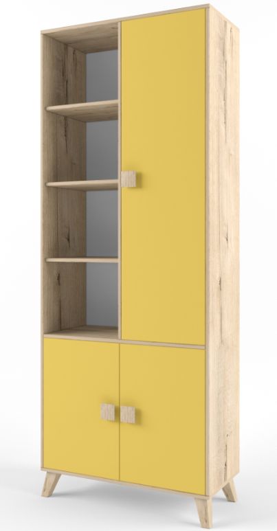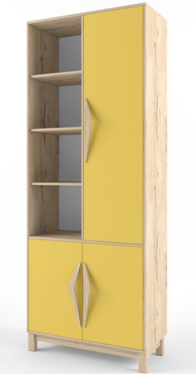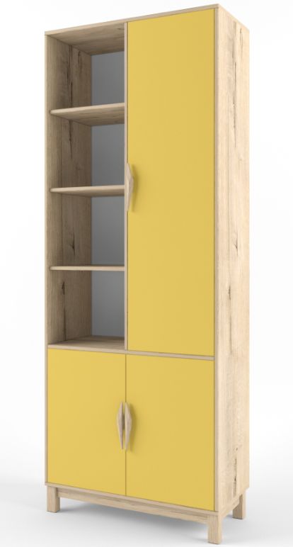 Шкаф-стеллаж широкий с распашными дверцами - элемент модульной системы для детской-подростковой комнаты от фабрики "38 Попугаев".