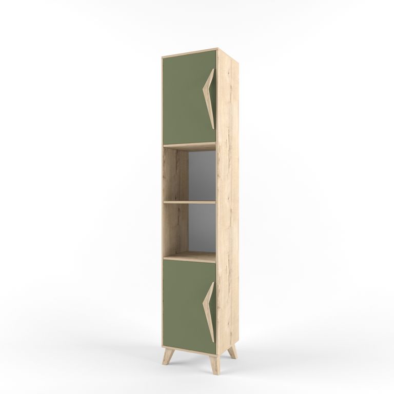 Шкаф-стеллаж узкий с распашными дверцами и полками - элемент модульной системы для детской-подростковой комнаты от фабрики "38 Попугаев".