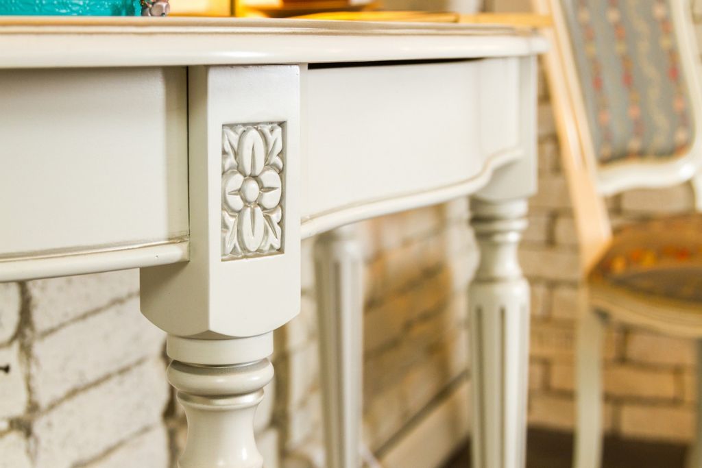 Столик полуовальный с выдвижным ящиком из массива бука, покраска по итальянской технологии.