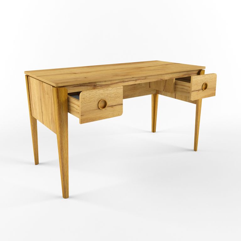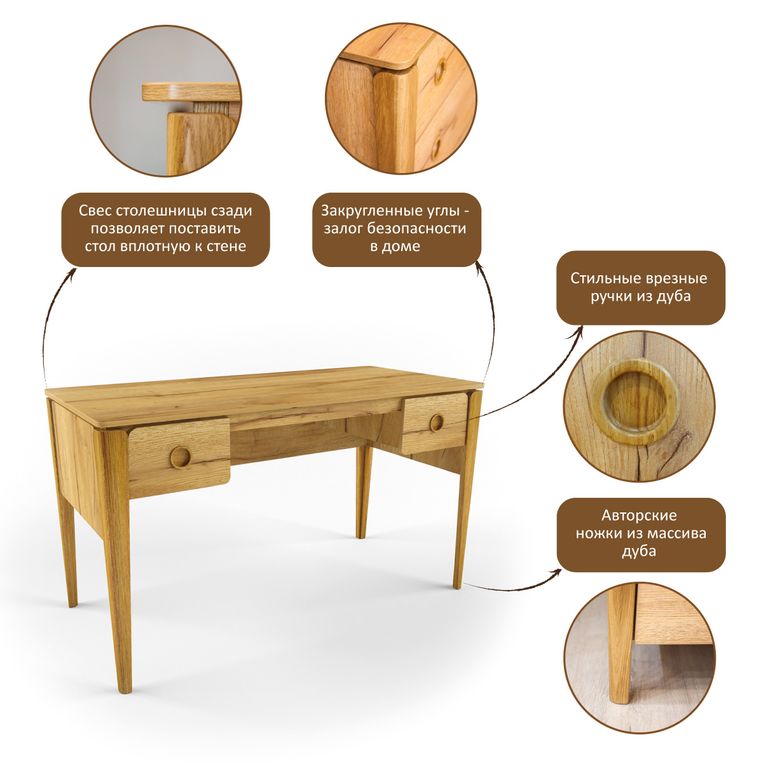 Стол с ящиками для хранения канцтоваров"Тэль" станет отличным местом работы и творчества, простой и приятный на вид, его столешница выполнена из ЛДСП, благодаря чему обеспечивается легкость в уборке, а ножки и ручки- из массива дуба.