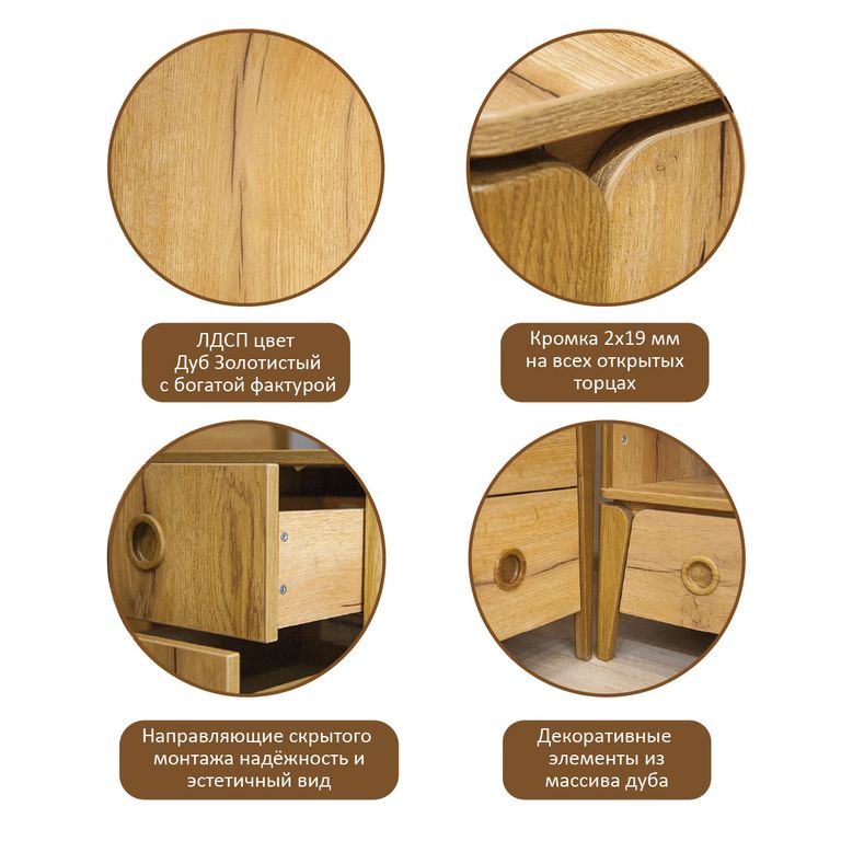 - Ручки: врезные, выточенные из массива дуба