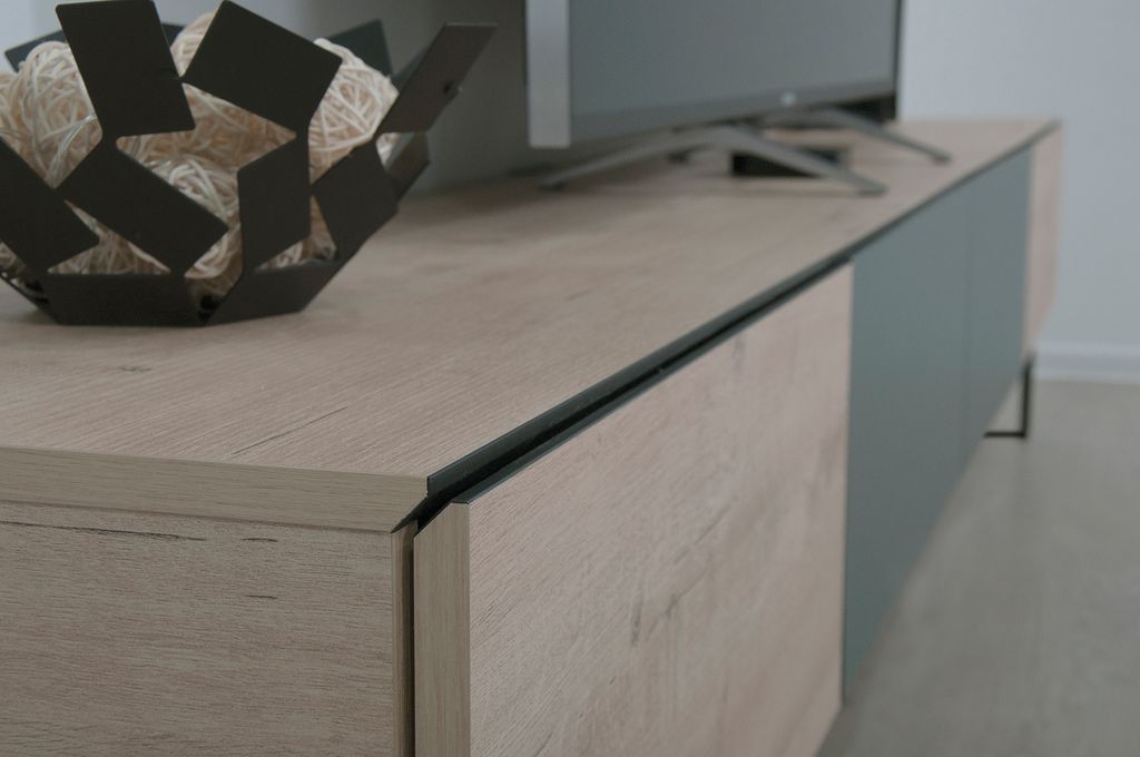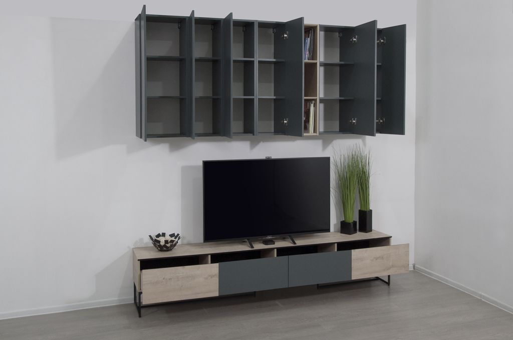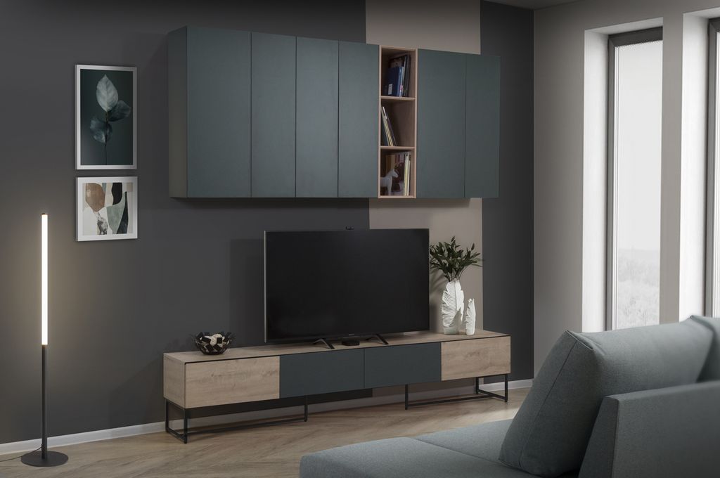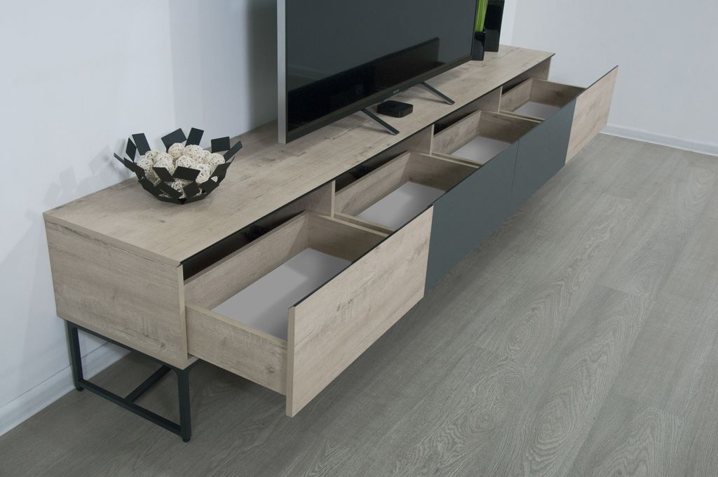 Тумба ТВ на металлических опорах - элемент модульной системы для гостиной в стиле лофт.