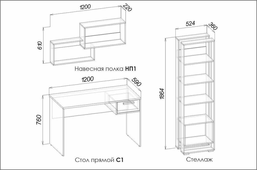 стол: 1200х590х760 мм